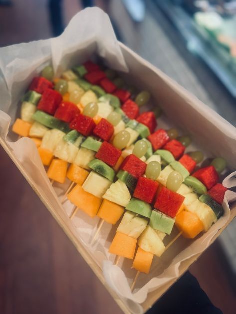 Beautifully presented fresh and delicious seasonal fruit skewers. These look great, taste amazing and are easy to consume.